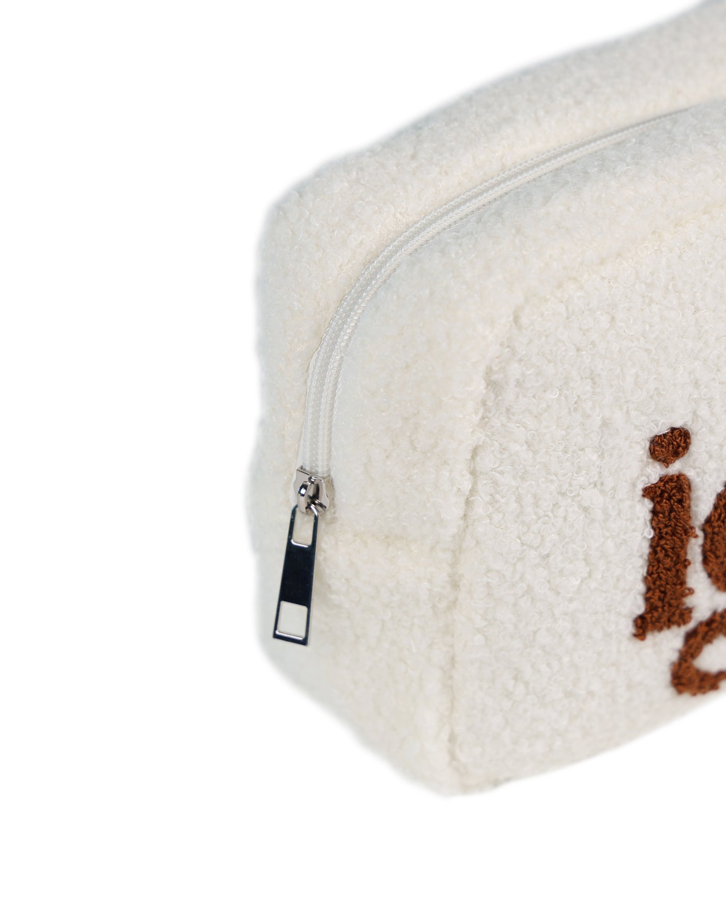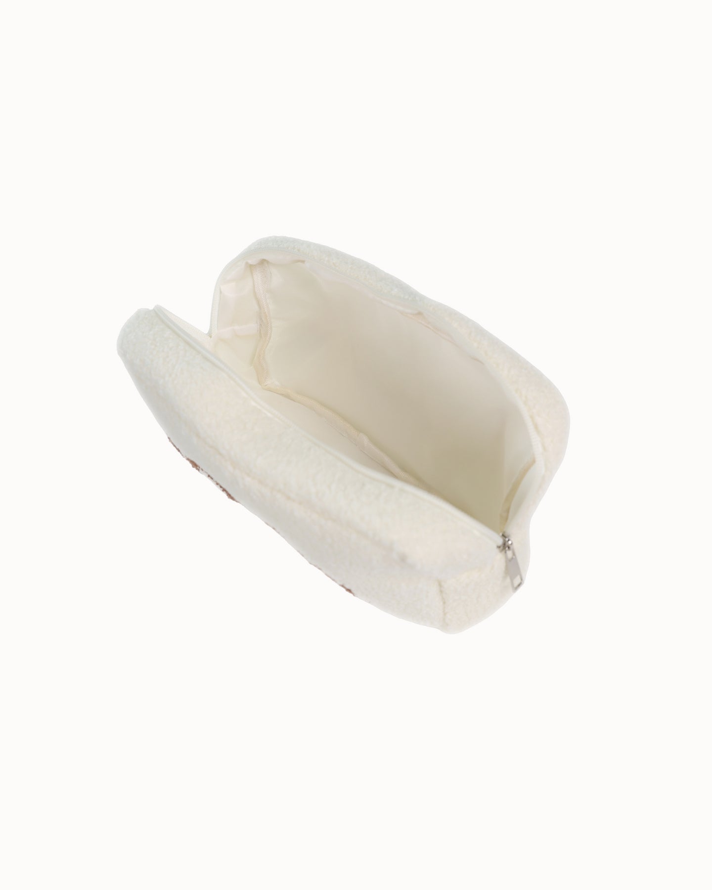 Pochette morbida in tessuto effetto peluche. Compatta, capiente e piacevole al tatto, è pensata