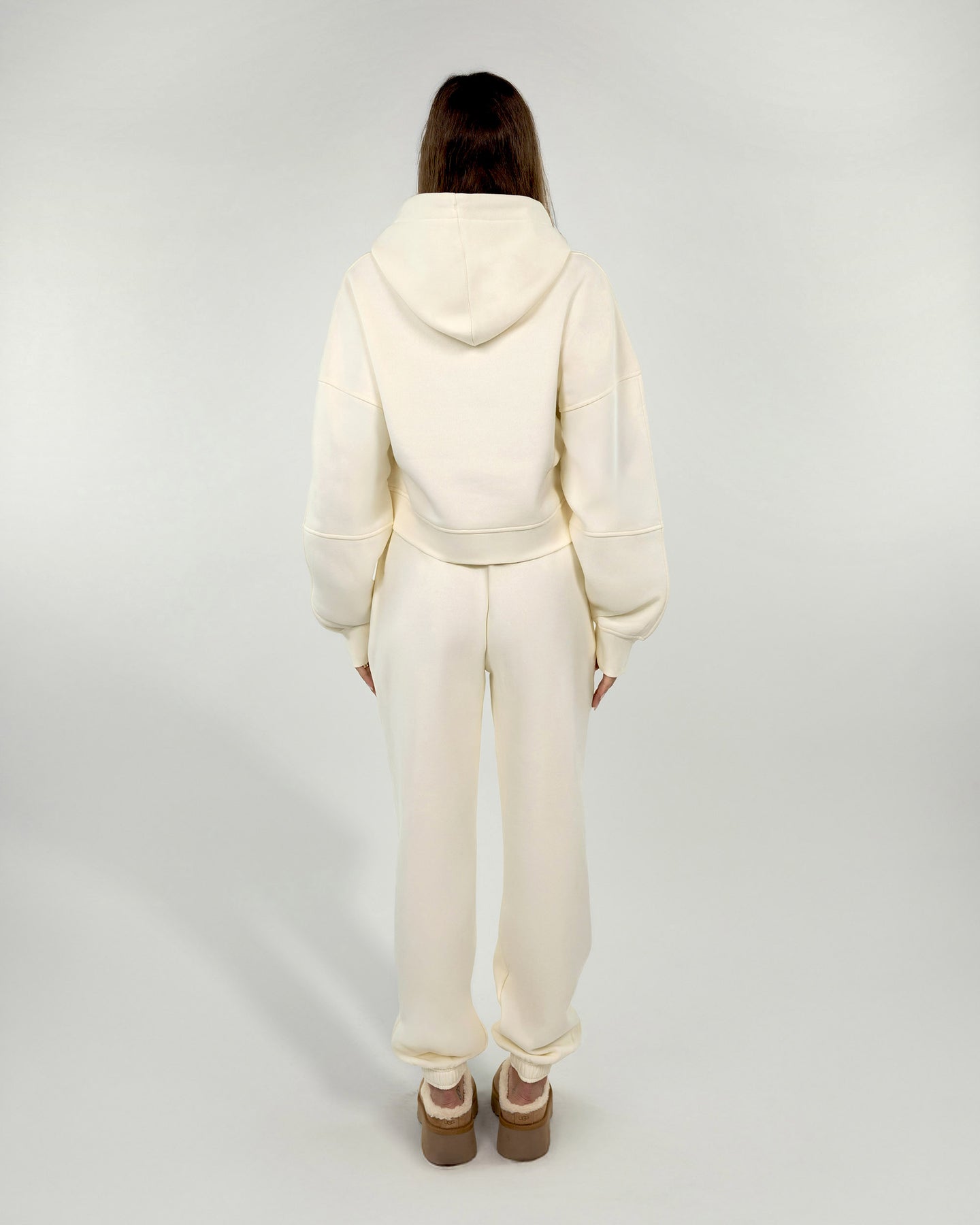 La felpa con cappuccio che ti abbraccia come una nuvola: femminile, dal taglio morbido e rilassato e maniche voluminose.