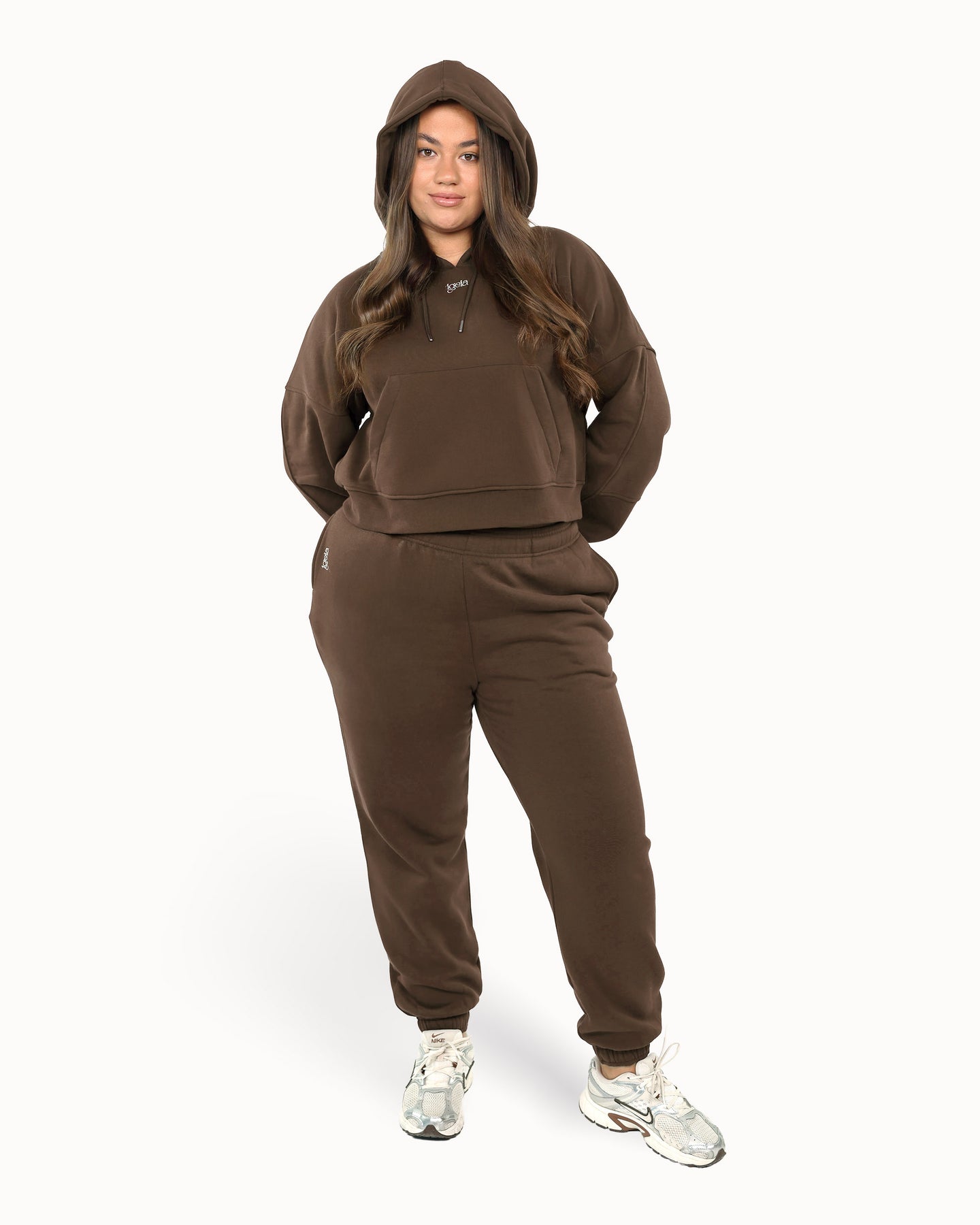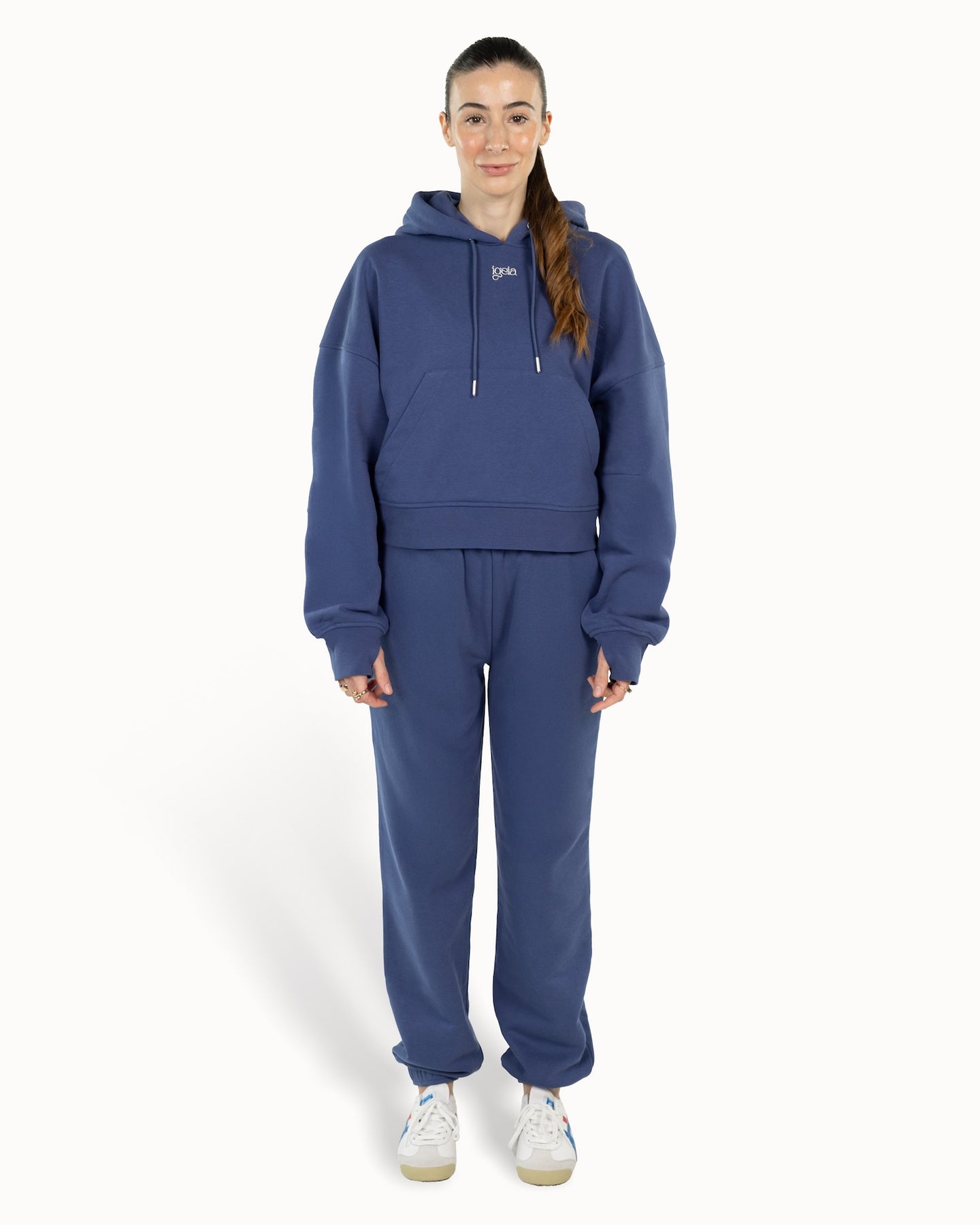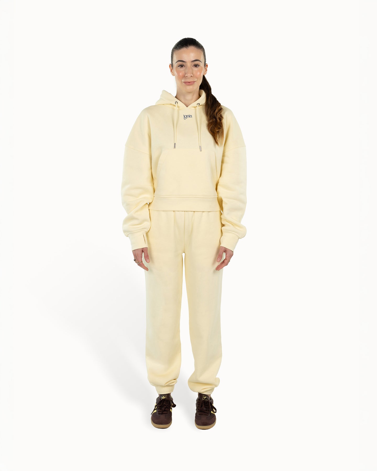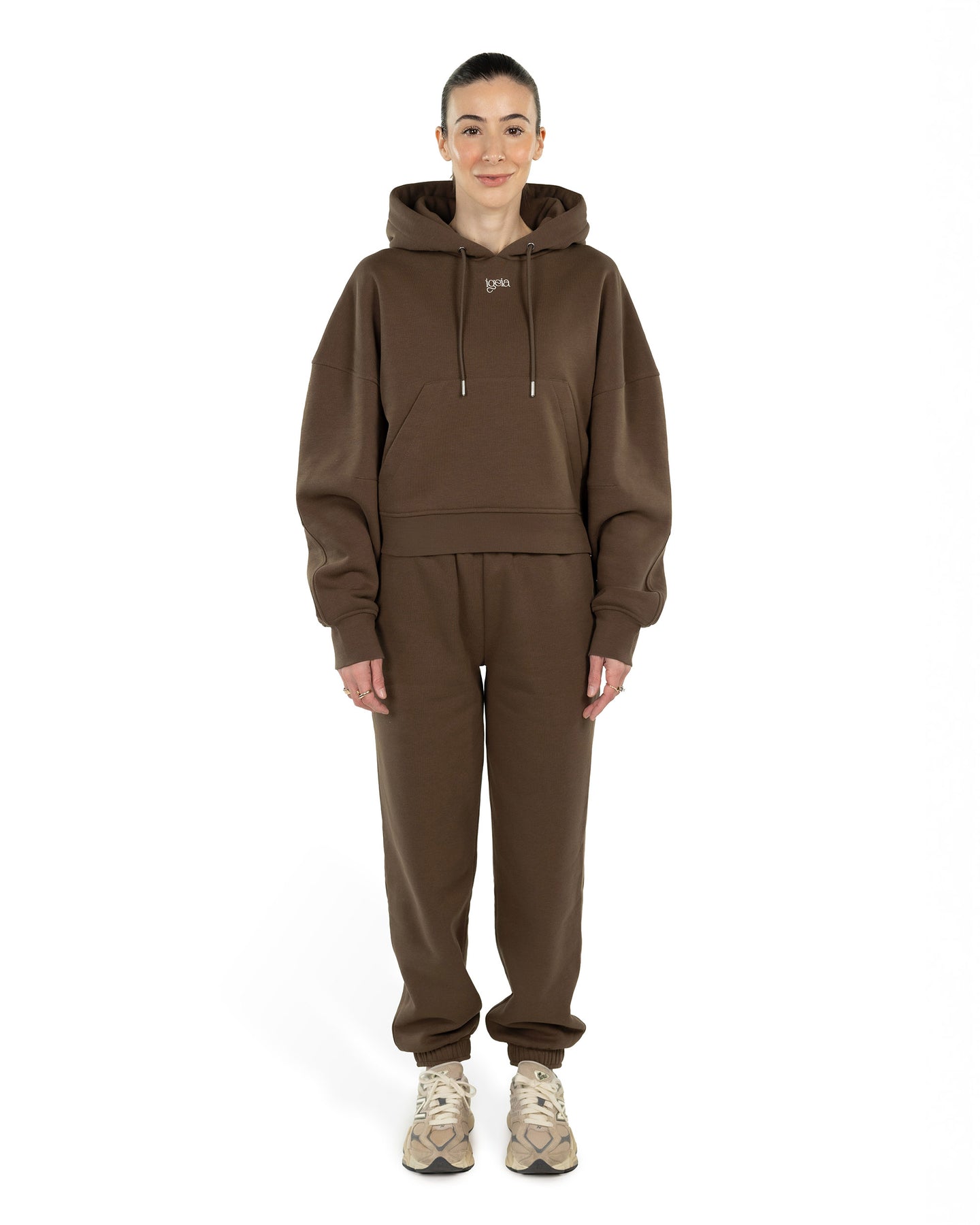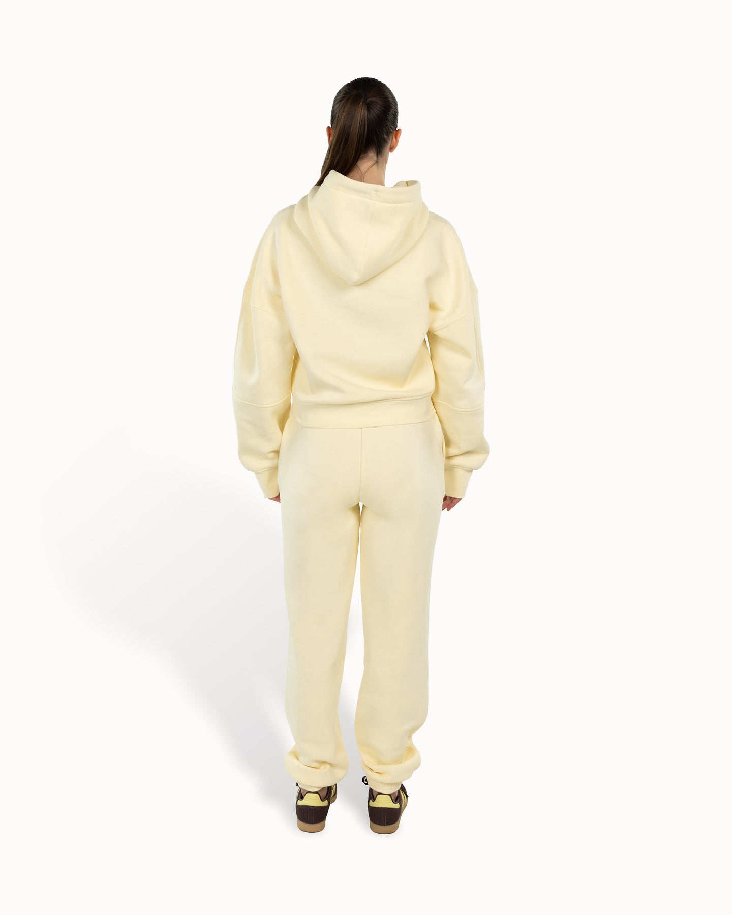 Scegli il comfort, senza rinunciare allo stile. Il Cloud Duo unisce felpa e pantalone morbidi per un look femminile e rilassato: cappuccio ampio, maniche a palloncino, foro per il pollice e tasca frontale capiente; pantaloni con vita regolabile e gamba affusolata. Soffice all'interno, strutturato fuori — una nuvola da indossare ogni giorno.