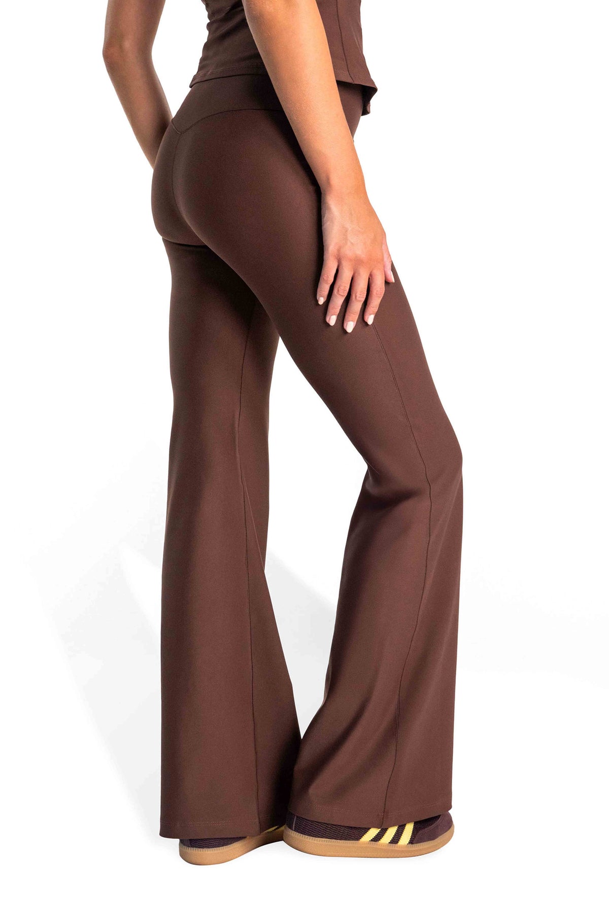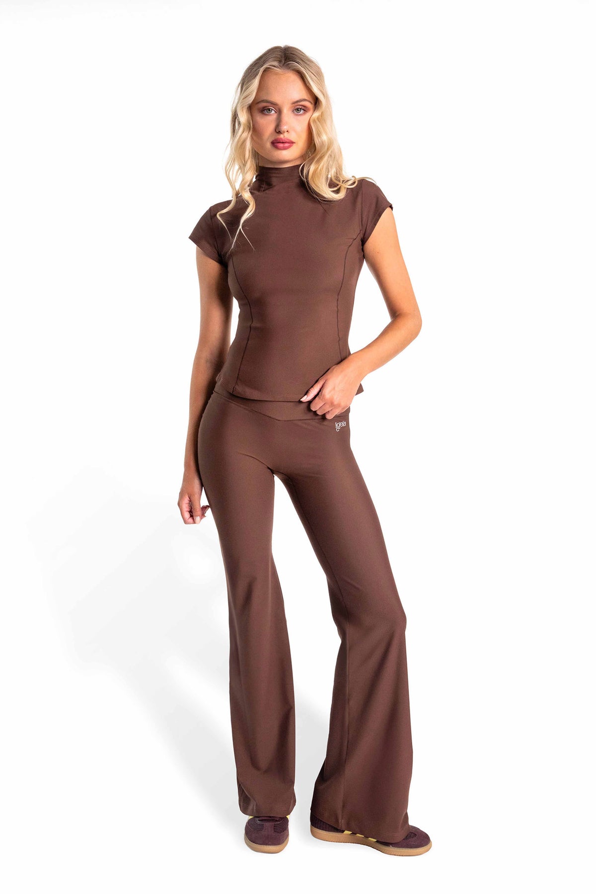 Il completo city-chic che ti accompagna ovunque, dalla classe di Pilates alla riunione in ufficio. La Princess Tee definisce la vita e scolpisce la silhouette grazie alle cuciture modellanti; il collo a lupetto ripara dalla brezza autunnale senza soffocare. I Classic Flares valorizzano il look slanciando le gambe. Insieme creano una linea essenziale e femminile, pronta ad accompagnarti ogni giorno dalla scrivania all’aperitivo; anche in lunghezza petite.